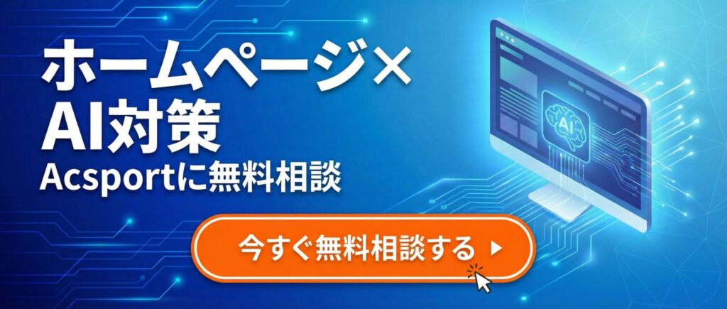 AI検索で選ばれる工務店になるには、デザインだけでなく、情報設計や伝え方まで見直す必要があります。ホームページ制作・リニューアルでAI対策を進めたい方は、工務店特化のAIO設計に対応したAcsportへご相談ください。